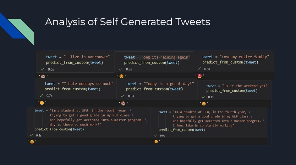 Emoji Prediction This project fine-tunes a DistilBERT model on tweets to predict an appropriate emoji. Gathers real tweets using the Twitter API and filters out irrelevant tweets to build the dataset. Uses the Huggingface transformers package to implement the DistilBERT model.